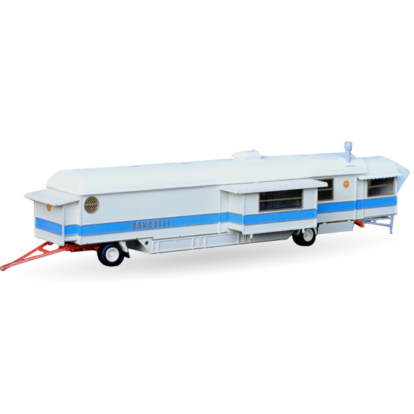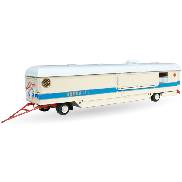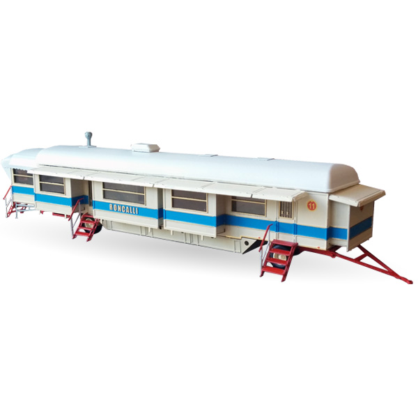 Der Bausatz ist ein typischer Schausteller Wohnwagen ausgestattet mit einer Veranda, 5 Erkern und 3 Eingängen. Der Wagen im Maßstab 1:87 wurde dem Original nachempfunden und ist mit vielen Details ausgestattet. So wurde das Dach inklusive Klimaanlage, sowie die Markise am Heck speziell gefertigt. An den 3 individuellen Treppen finden sich Geländer. Mit dem Bausatz lässt sich der Wagen im komplett aufgebauten Zustand darstellen. Die Fenster sind so konstruiert, dass sie vor der Montage lackiert und so sauber angebracht werden können. Beim Circus Roncalli dient der Wagen als Wohnwagen für den Betriebsleiter.