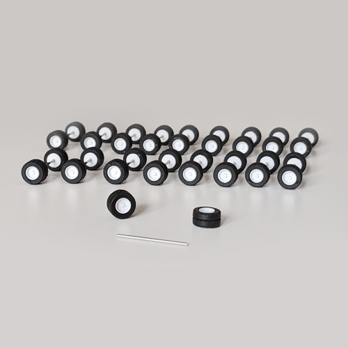 Set mit 18 kompletten Radsätzen in 1:87 aus Kunststoff. Die Radsätze eignen sich bestens für die Bereifung von modernen Circus- und Kirmeswagen. Hervorragend geeignet für die Bereifung von Circus Krone, Circus Knie, Circus Roncalli und diversen moderneren Kirmeswagen. Die Reifen haben einem Durchmesser von ca. 9mm. Das gesamte Set besteht aus 36 Felgen, 72 Reifen und 18 Stahlachsen und lässt sich durch die Kotflügel aus unserem Zubehör Kotflügel Set (Art. Nr. 96035) ergänzen. Die Radsätze sind eine passende Ergänzung für alle Modellbauer, die Circus oder Kirmes Wagen gerne selber bauen oder umbauen.